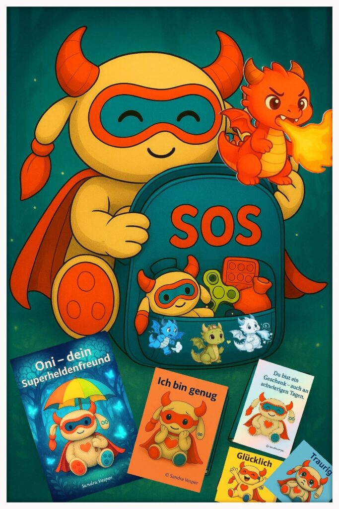 Oni begleitet sie dabei wie ein sanfter Superheldenfreund: urteilsfrei, warmherzig und immer auf ihrer Seite. Die klaren, freundlichen Bilder geben Orientierung. Die wiederkehrenden Gefühle geben Sicherheit. Und das gemeinsame Spielen schafft Verbindung – mit sich selbst und mit den Menschen, die sie begleiten.